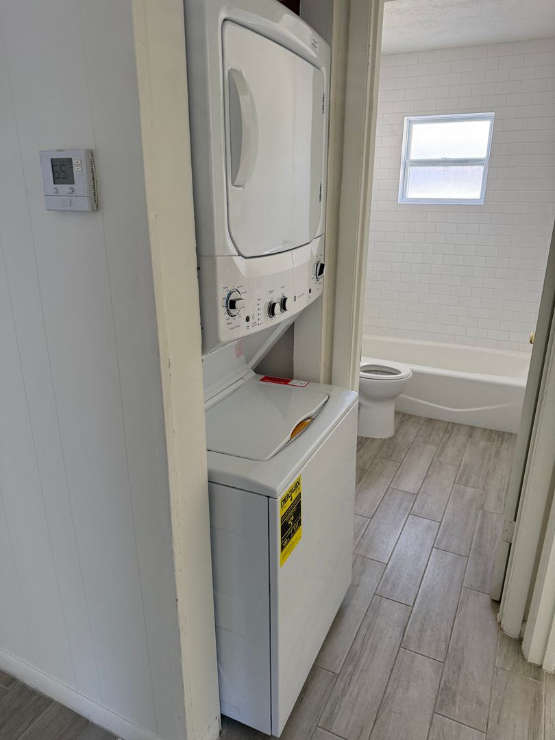 The apartment has tile flooring throughout and central heat/air. Water is included. Washer/dryer included.