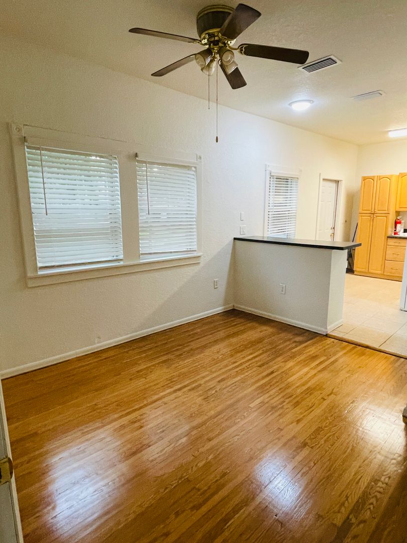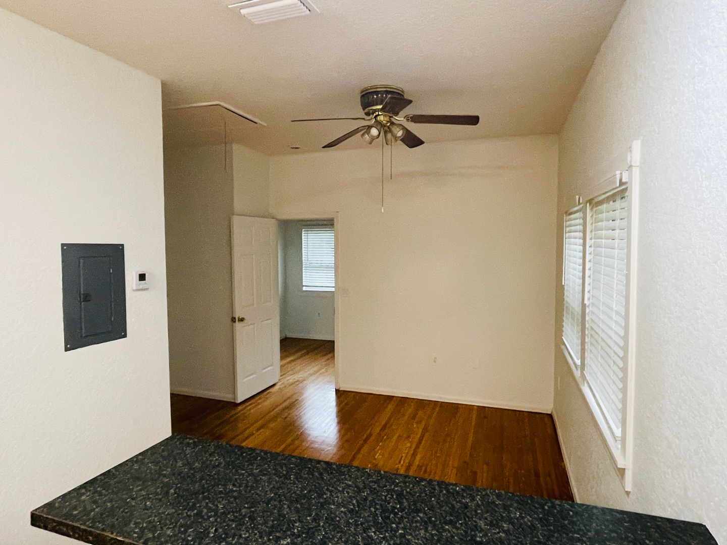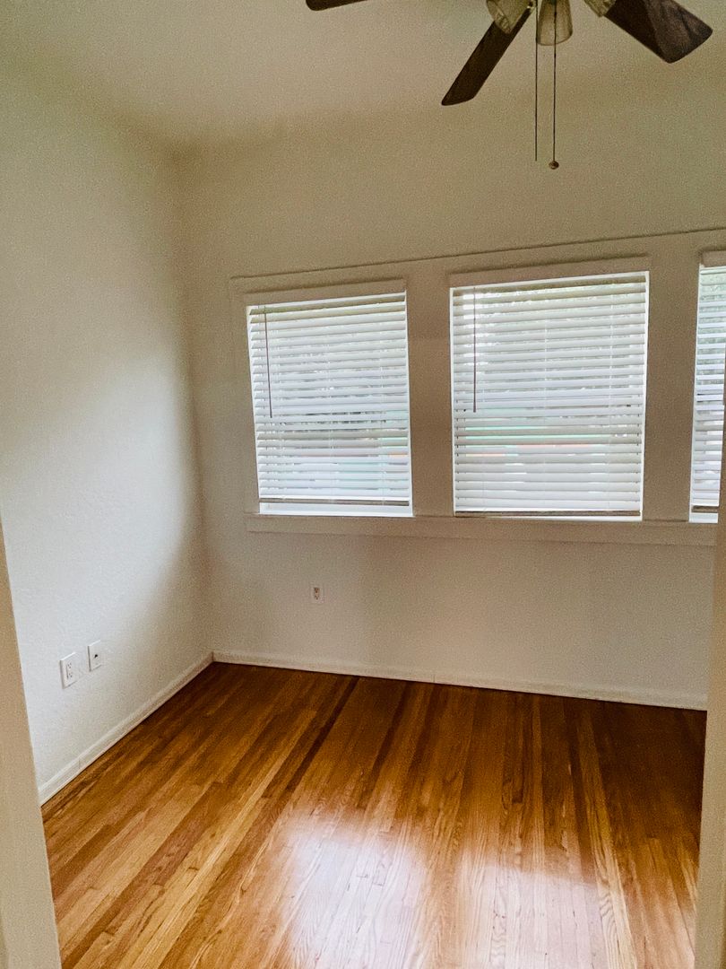 The apartment is an upstairs 1 bed 1 bath with tiled kitchen and bath, and historic hardwood floors in the living room and bedroom areas. It has tall ceilings and central heat and air. Updates include new refrigerator & range, fresh paint, and vinyl blinds. The wood floor of the den and bedroom were just refinished. There is a screened porch perfect for patio furniture. Washer and dryer are included. Water included.